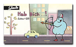 Hier wird scharf geschossen: Er zielt auf sein Lieblingsauto und trifft ... mitten ins Herz von seiner Angebeteten. Das muß also Liebe sein. Geeignet als Einladung und Liebeserklärung oder als Entschuldigung oder einfach als Mitbringsel - toll umgesetztes Daumenkino unseres ZeichnerInnenteams Stefanie Bokeloh und Karolina Kruz