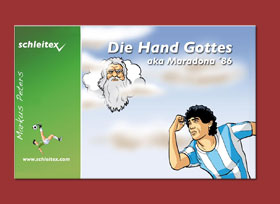 Die berühmteste Szene der WM (von wann eigentlich) mit der Hand Gottes hier künstlerisch umgesetzt vom Schleitex Verlag... Von dem Rummel danach hat sich Maradona irgendwie nie wieder erholt, oder?